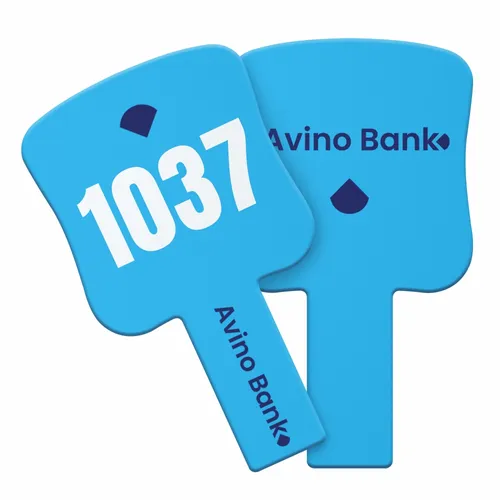 Custom auction paddles are handheld signs used during auctions, printed or engraved with numbers, logos, or designs for bidder identification and branding.