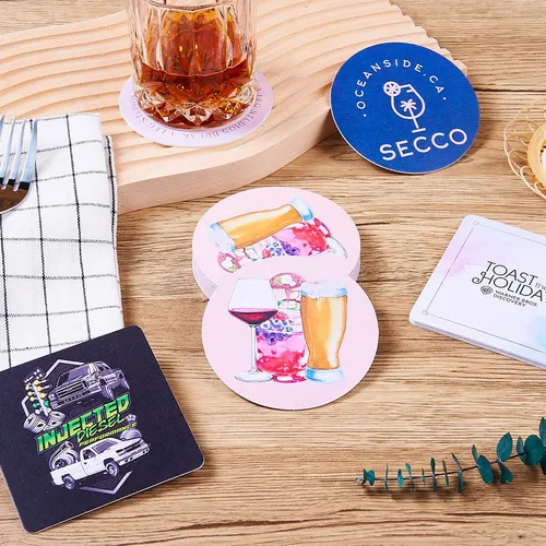 It is composed of a high-density water-absorbent board, which absorbs water faster than an ordinary low-density water-absorbent board. Under the same water absorption performance, a Super absorbent bar coaster can be made thinner and more beautiful. This is reusable and can be used again after air-drying the first use. This coaster can be printed in full color (including photos, landscapes, and wedding images) and restore the required LOGO in full bloom. The Super Absorbent Bar Coaster can also be customized in shape, making the form you need come true and making your LOGO more conspicuous and unique.