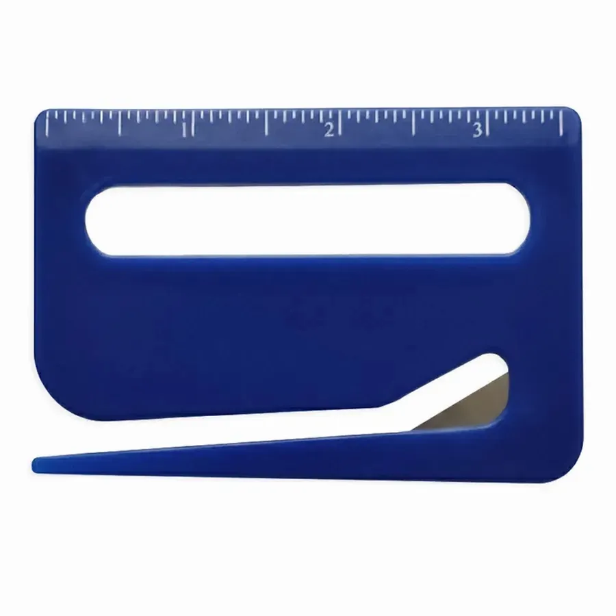 Featuring easy-to-read measurement markings and a hidden metal blade, this handy plastic tool is perfect for offices, schools, or trade show giveaways.