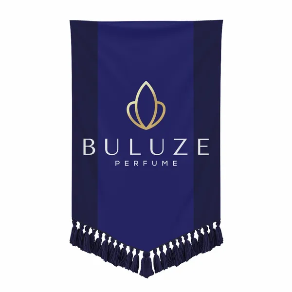 The combination of premium polyester fabric, rich dye-sublimation printing, and the decorative bottom fringe gives it a more formal and elegant feel than a typical vinyl or utility banner.